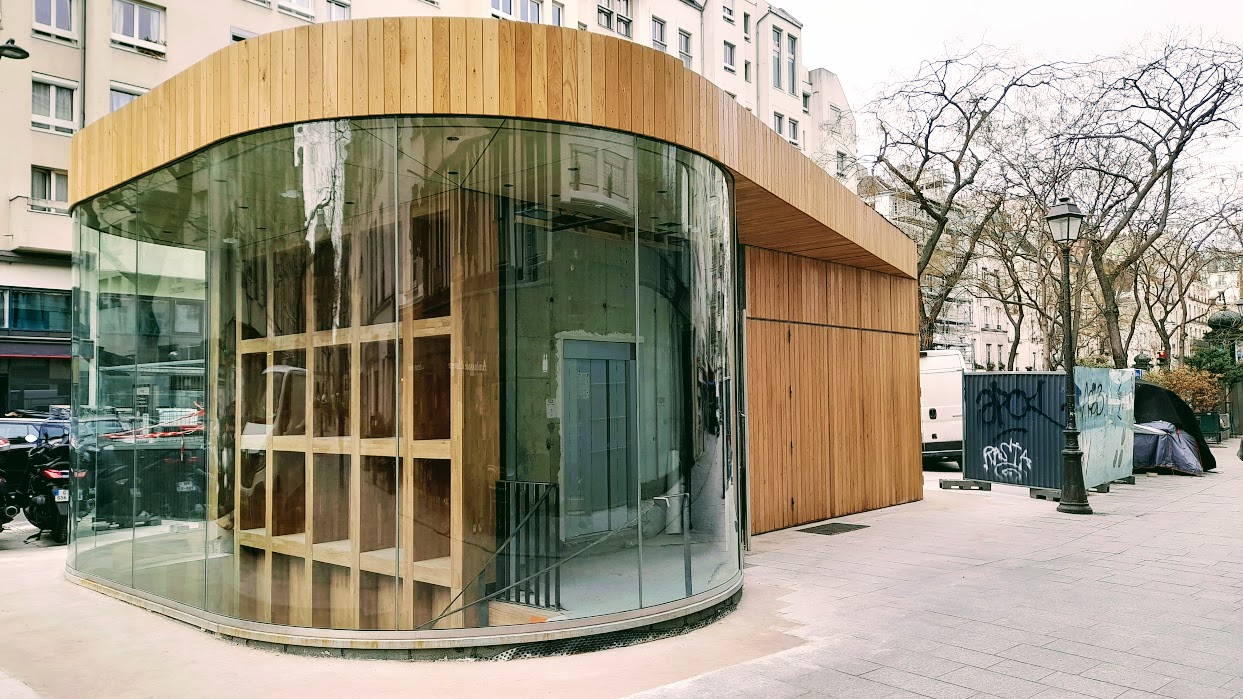 L'édicule fraichement révélé, tout de verre et de bois, apporte une touche de nature dans un univers minéral un peu glacial. Le grand défi est de le protéger maintenant contre les assauts des vandales. On les supplie d'être tendres avec un environnement qui est aussi le leur !
