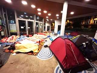 Plusieurs dizaines de couchage sont installés sous le parvis de l'école….