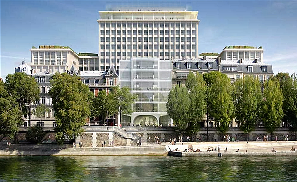 Le nouveau visage de l'immeuble Morland, 17 boulevard Morland (IVe) intitulé "Mixité Sociale", est un projet qui comporte."… une crèche de 66 berceaux… un hôtel, une auberge de jeunesse,… une piscine et 5.000 m2 de logement social… Il … ouvre le bâtiment aux parisiens et créé un nouveau flux, tout en proposant de nouveaux équipements pour le quartier…. L’ancien hall d’accueil, complété de constructions neuves, sera repensé sous la forme d’un espace ouvert à tous qui abritera un marché alimentaire avec une offre diversifiée. Le sommet de la tour… accueillera… sur les deux derniers étages, un concept artistique… au sein du bar panoramique et du restaurant."