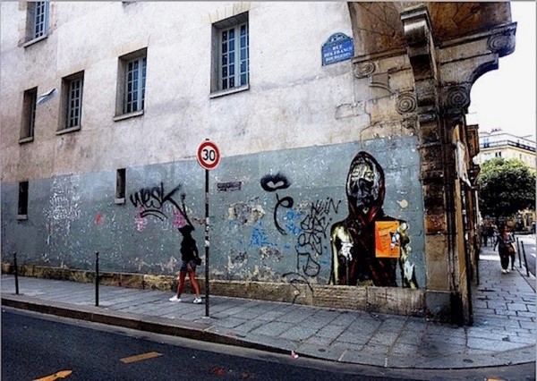 On est en limite du secteur sauvegardé du Marais mais le site n'en est pas moins digne du plus haut intérêt. Le Maire du IIIe Pierre Aidenbaum ne s'y est pas trompé en décidant il y quelques années de réaménager le carrefour par des travaux de voirie. Le résultat est à la hauteur des attentes mais les tagueurs et leurs bombes de peinture sont venus tout gâcher. Le côté sud, comme on le voit sur la photo, est recouvert de signes cabalistiques qui défigurent le paysage en créant un environnement anxiogène inutilement et stupidement agressif.