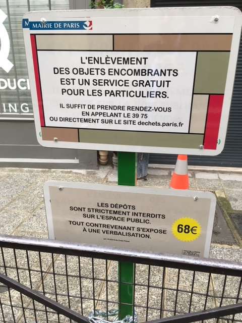 IMG_0957Panneau de la Mairie rue Pecquay (IVe) rappelant l'interdiction des dépôts sauvages d'ordures, l'amende encourue et la procédure existante pour un enlèvement rapide (photo VlM)
