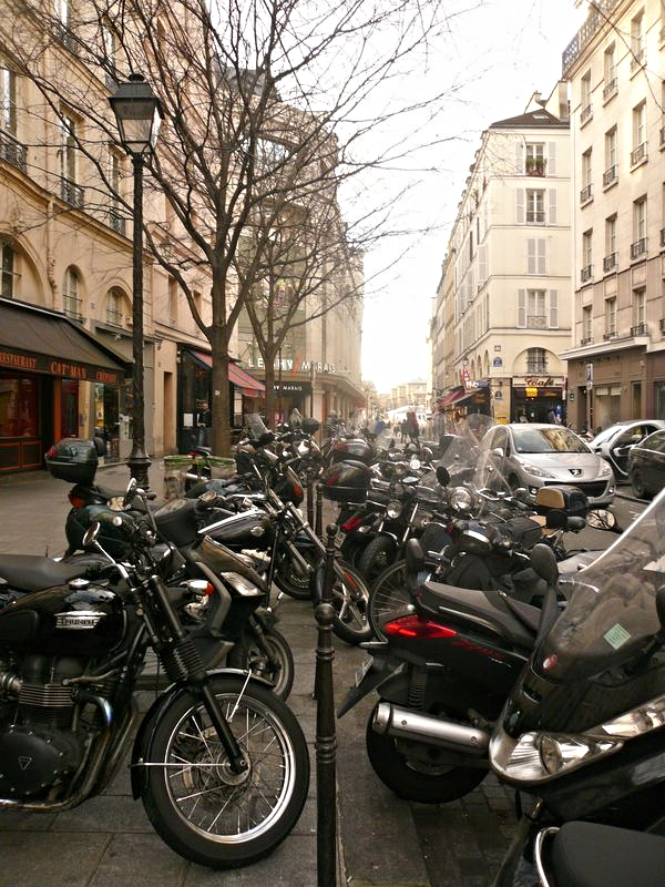 Rue du Temple (IVe) : des motos à foison (Photo VlM)