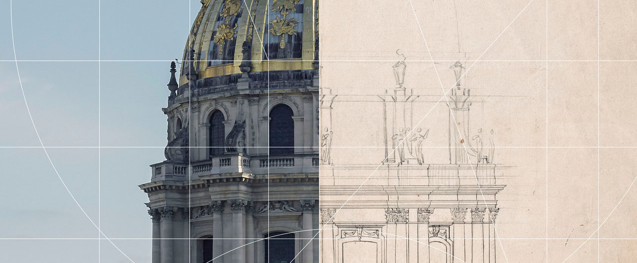 Haut de l'affiche de l'exposition "Dessiner pour bâtir" aux Archives Nationales