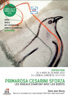 L'artiste native de Bologne travaille à Rome où elle a suivi ses études à l'Institut d'Art. elle a vécu à londre et New-York a participé à de nombreuses expositions dans différentes capitales. Le Centre Pompidou l'a déjà accueillie par le passé. Outre la peinture et les fils, Primarosa Cesarini Sforza travaille la céramique, plus particulièrement celle provenant de la ville italienne de Deruta. Plusieurs musées ont acquis certaines de ses œuvres.