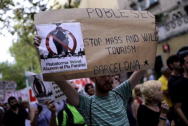 Défilé des habitants de Barcelone s'insurgeant contre les ravages nocturnes des touristes (Photo AFP)