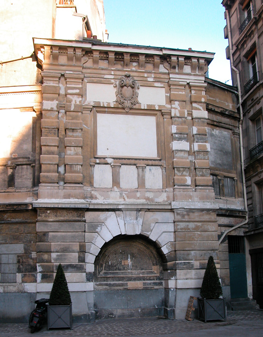 L'affaire remonte à 2011. Un habitant de la rue des Écouffes, sachant que le mur de son immeuble se trouve derrière la façade qui habille la fontaine située au fond de l'impasse, décide de son propre chef de percer cette façade pour donner jour à une fenêtre préexistant dans son logement (article du 8 décembre 2013).