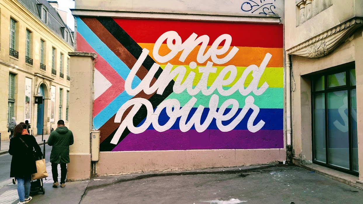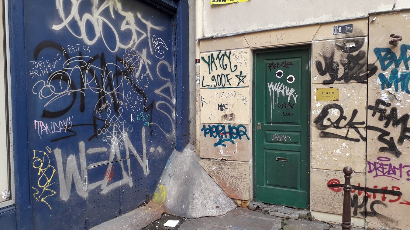 Ils ont pris tout leur temps sans se cacher le moins du monde pour laisser sur le mur-pignon du 57 rue des Archives (IIIe), copropriété privée, un dessin coloré signé "One United Power". Le nom est connu : "1UP (ou One United Power) est un collectif de graffeurs de Berlin actif depuis 2003, célèbre pour ses graffitis vandales dans l'espace public, réalisés de manière rapide" (Wikipédia).