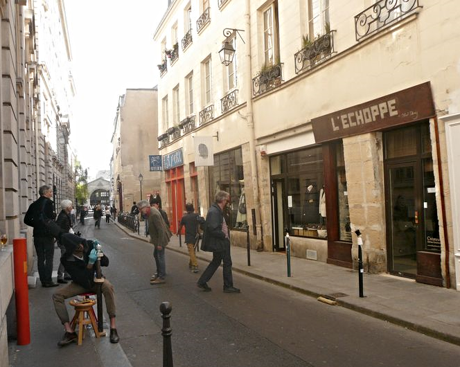 Rue des Blancs-Manteaux, le "maquilleur" en action (IVe) (Photo VlM)