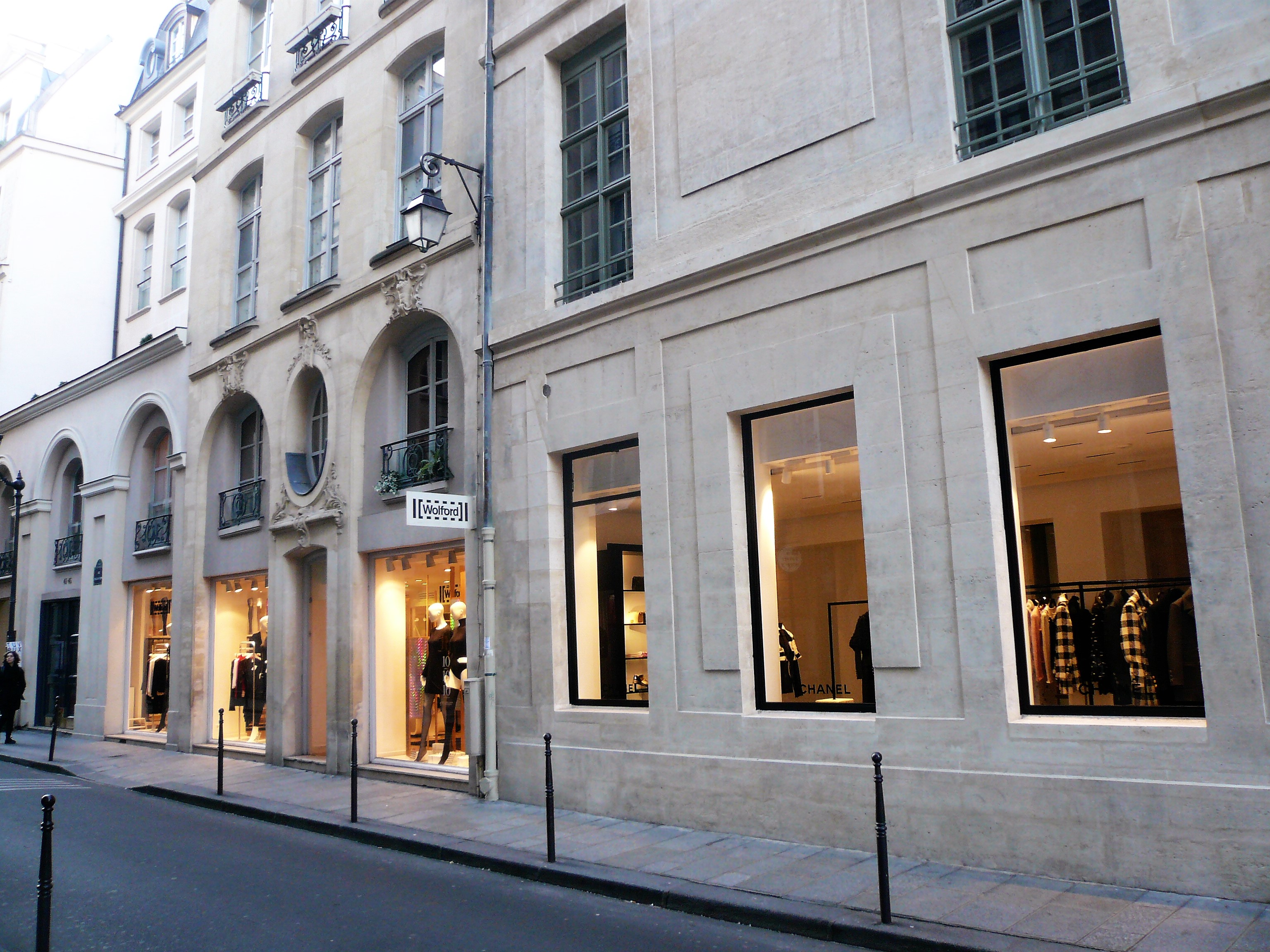 Sur la rue, on a désormais côte à côte deux magasins de luxe, Wolford et Chanel. Il y aura des commentateurs pour  regretter cette montée en gamme ; nous sommes tentés de leur répondre : voyez ce qu'étaient ces bâtiments et le paysage de la rue il y a quelques années, du temps où Oliviers & Co tenait une boutique d'huiles fines !