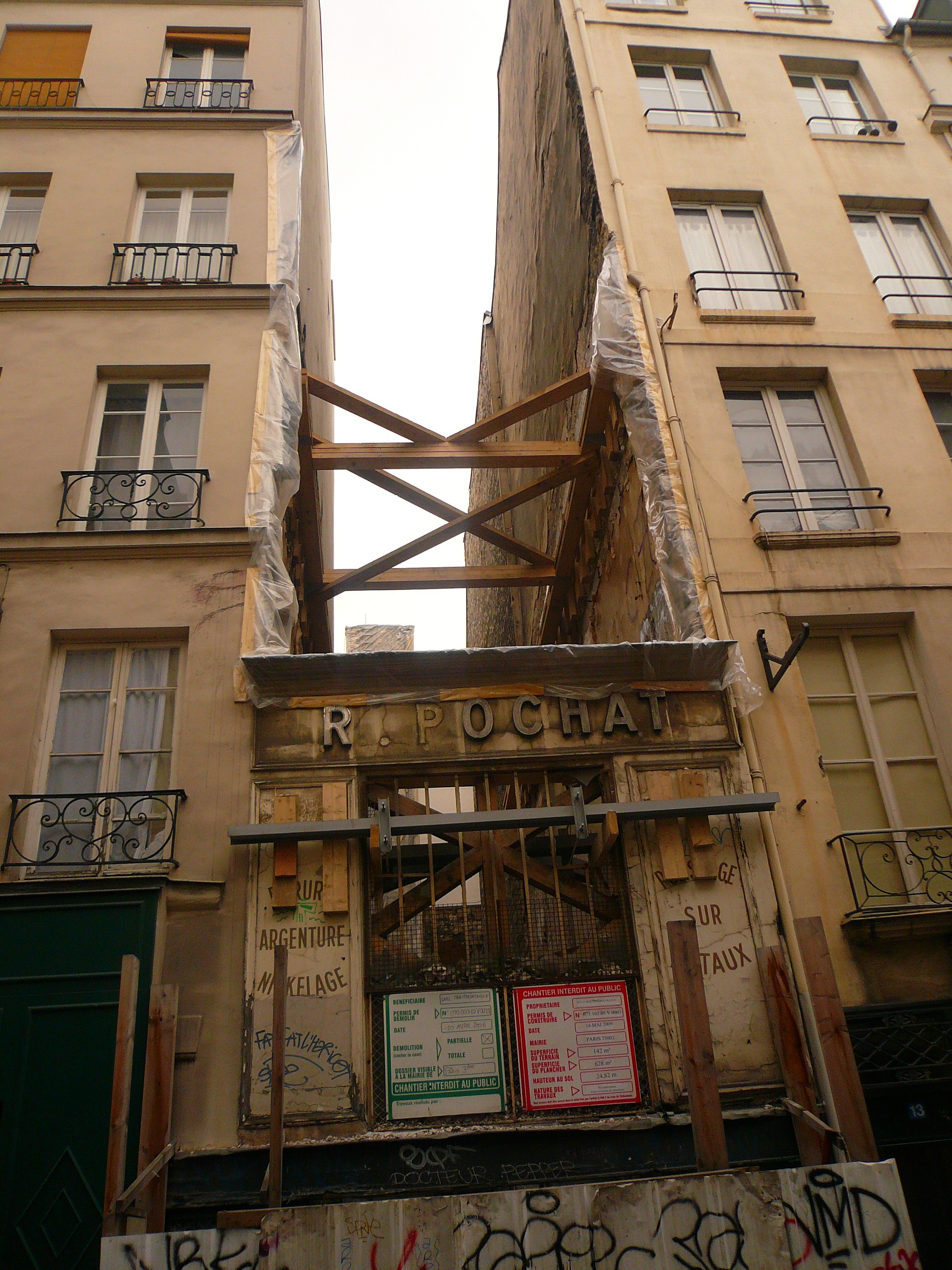 "R. Pochat", 11 rue des Gravilliers (IIIe), il y a trois ans. Les vestiges d'un atelier de traitement des métaux.