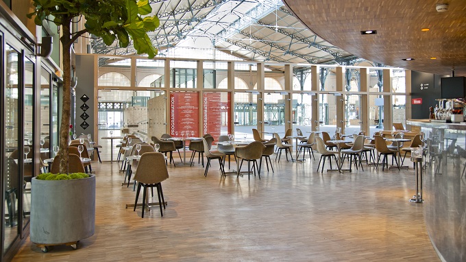 Intérieur du restaurant "Le Jules" installé pour l'instant à l'intérieur du Carreau du Temple (IIIe)