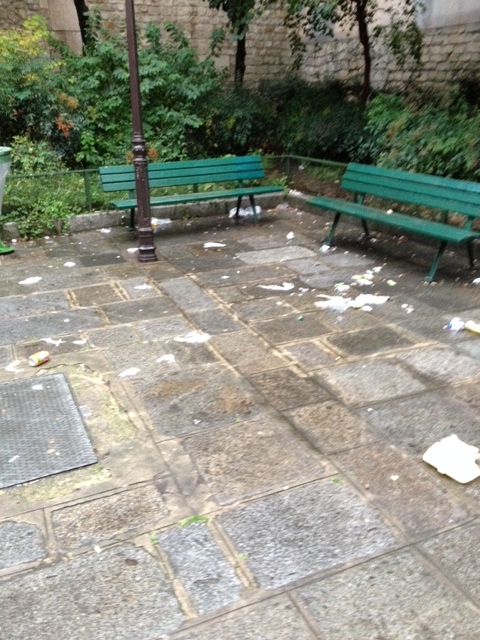 Photo-41Le Square Andrée Vivien rue de Haudriettes (IIIe) envahi de papiers et canettes (Photo VlM!)