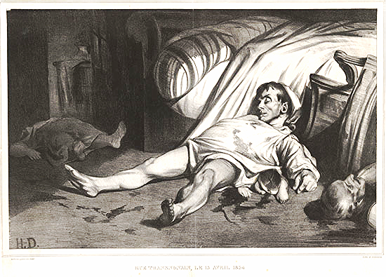 Exemplaire de la fameuse estampe de Daumier appelée par certains contemporains la "Boucherie de la rue Transnonain" (BNF Département Estampes et Photographies)