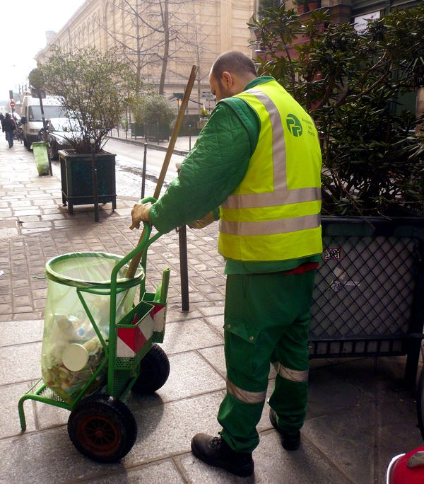 Celui qu'il faut célébrer pour le travail ingrat mais indispensable qu'il accomplit ; celui qu'il faut respecter aussi en se gardant de gestes inciviques, jets de déchets, flyers, chiens qu'on laisse chier sans ramasser, affiches et affichettes sauvages : l'agent de la propreté de Paris (Photo VlM)