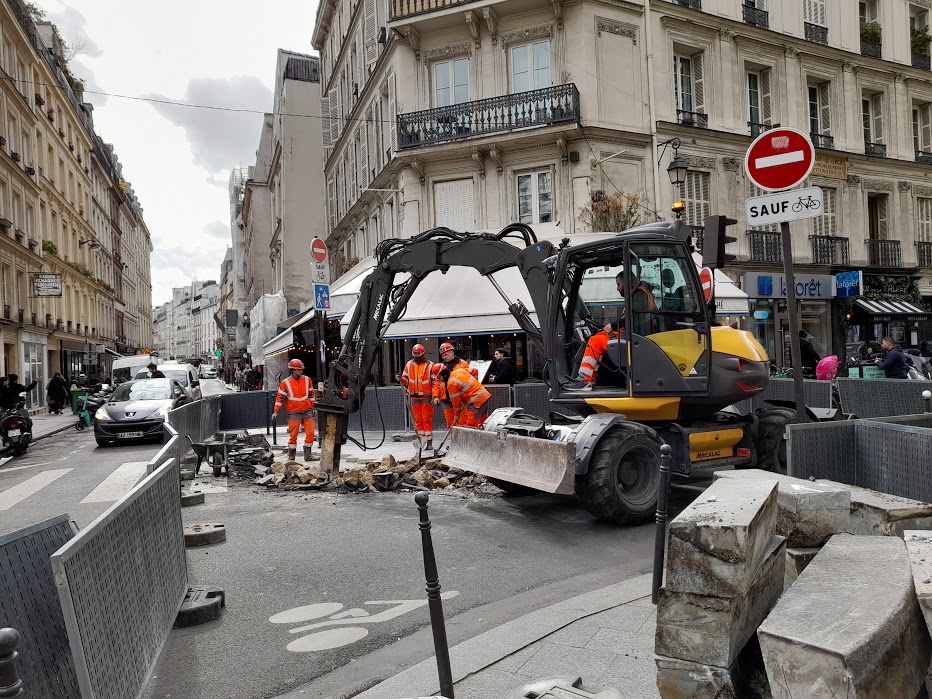 En poursuivant notre incursion vers le nord, nous découvrons 17 rue des Archives une autre palissade qui, espérons le, disparaitra prochainement. Elle dissimule des travaux d'aménagement du local existant en vue de l'ouverture d'un commerce de chaussures Birkenstock, une marque allemande dont le siège est à Neustadt (Wied) en Rhénanie-Palatinat.
