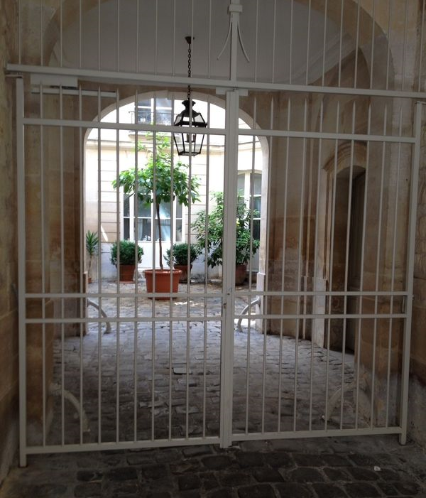Vue de l'entrée et de la cour du Petit Hôtel d'Estrée 70 rue des Gravilliers (IIIe) – (Photo VlM)