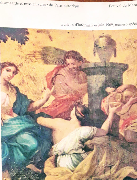 Pierre Housieaux était membre de la Commission du Vieux Paris et depuis des années le Président de l'Association pour la Sauvegarde et la Mise en Valeur du Paris Historique, indissociable de l'Histoire du Marais. La photo est la couverture du premier bulletin d'information de l'association en 1969 et l'annonce du "Festival du Marais". Une histoire qui a commencé 1961 avec l'invention et le nettoyage des plafonds Louis XIII de l'Hôtel de Vigny, rue du Parc Royal (IIIe), et qui s'est poursuivie jusqu'à nos jours avec la restauration du cellier médiéval d'Ourscamp, 46 rue François Miron (IVe), siège de l'association.