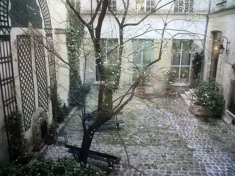 IMG00086-20140216-1046Cour d'un Hôtel du Marais avec ses prunus en fleur (photo VlM!)