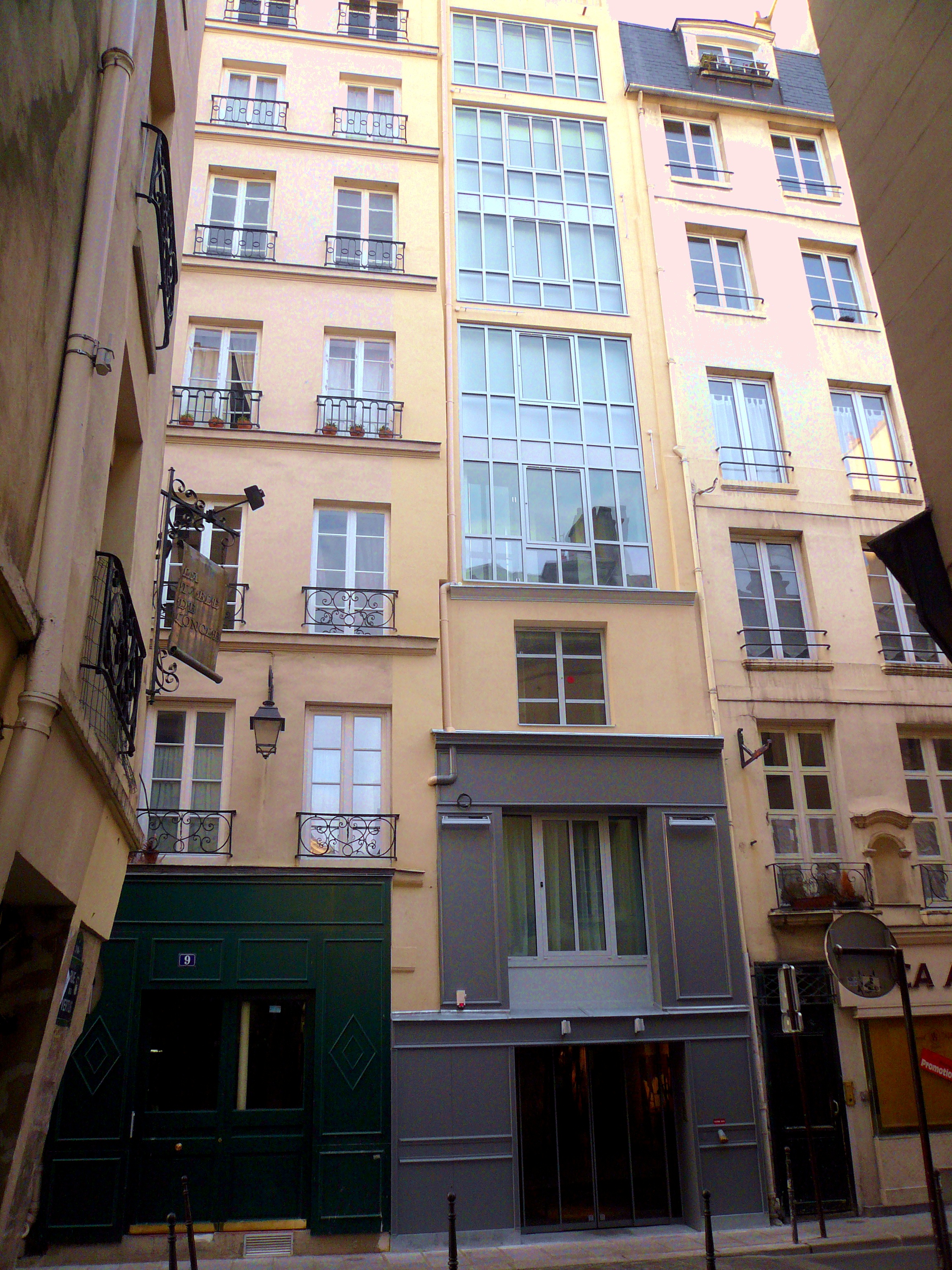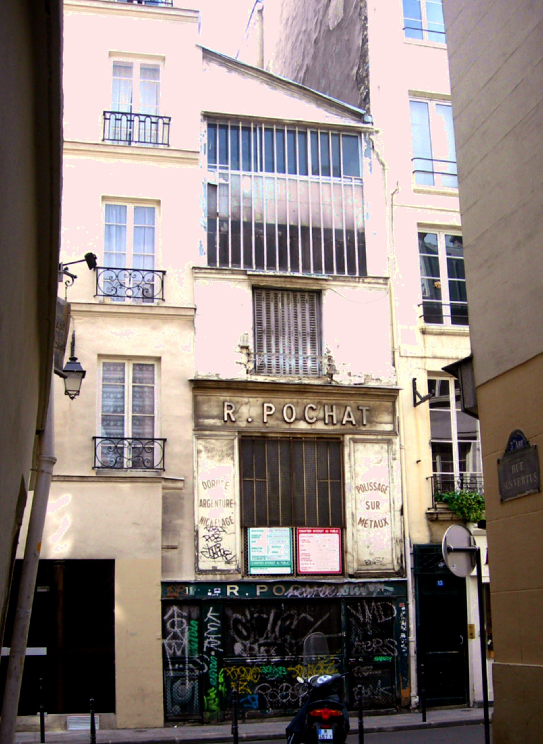 Nous avons évoqué à plusieurs reprises l’évolution rapide de la rue des Gravilliers (IIIe) du fait de l’installation, dans sa partie entre la rue du Temple et la rue Beaubourg, de nouveaux commerces qui changent son aspect, une sorte de renaissance depuis le maintien de la boucherie "Chez Manu " rénovée depuis et la création de "l’Hôtel Jules et Jim". Il y a peu nous avons publié un article sur la rénovation de la devanture d’un ancien bar-tabac au n° 61 (article du 18 juillet).