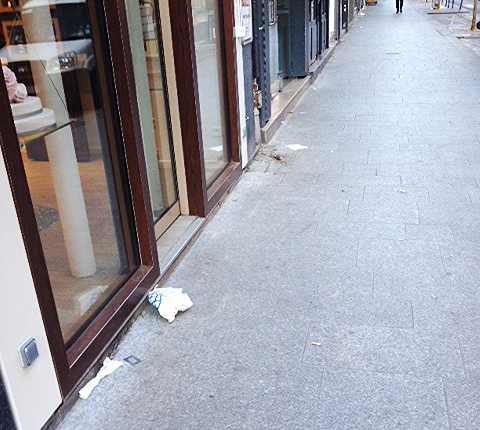 Papiers gras devant une pâtisserie (20/04/2015) (Photo VlM)