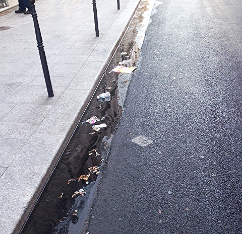Caniveau et détritus divers rue Rambuteau (20/04/2015) (Photo VlM)
