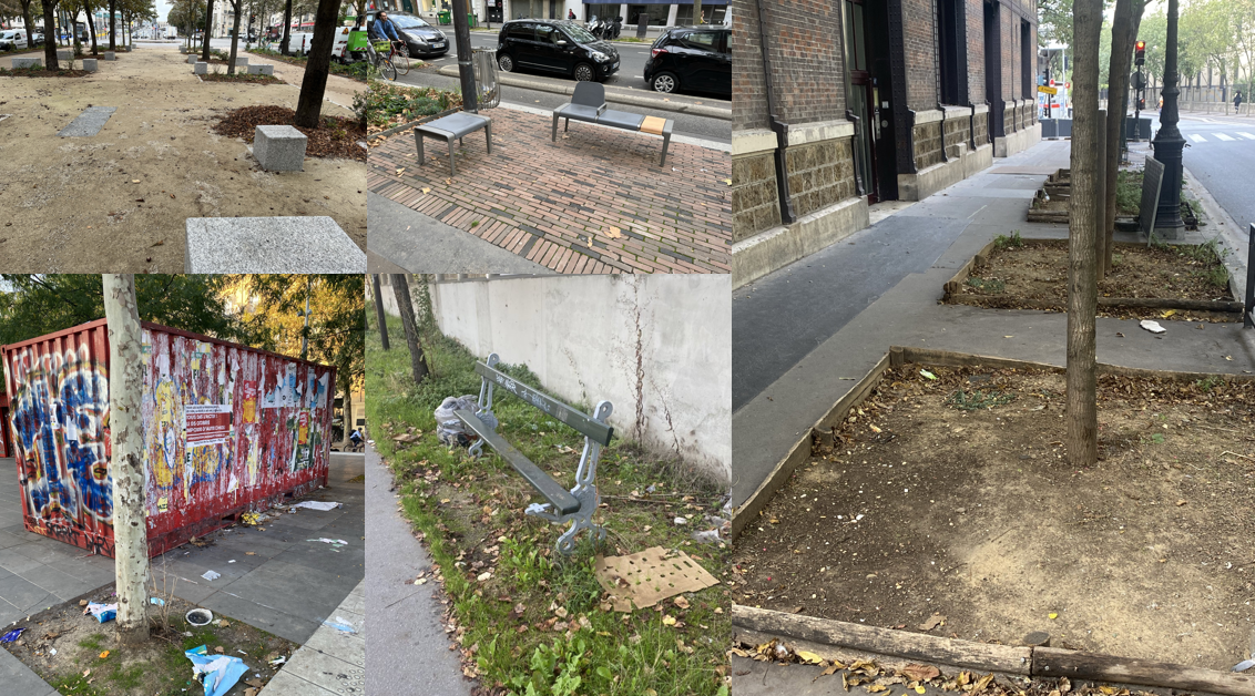 La ville dessine depuis trop longtemps maintenant une esthétique disparate pseudo participative et de « récup » qui détruit l’homogénéité et l’identité de Paris. Embellir la ville n’est plus un objectif de l’équipe municipale. On remplace des grilles en fonte par d’affreuses bordures en bois qui pourrissent à petit feu. On remplace les bancs Davioud à double assise par des blocs de granit ou des bancs « mikado ». Chaque nouveau mobilier a une nouvelle couleur, une nouvelle forme, une durée de vie réduite et surtout il ne signe pas la marque de Paris. Il aurait pu être installé dans n’importe quelle autre ville du monde tant il est impersonnel.