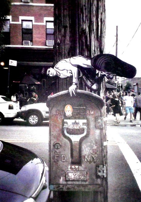 Une nouvelle création de 2Shy dans la rue Charlot, sur le "mur du Marais". Sympa de voir l'artiste en pleine action… 2Shy est le street-artiste qui a déjà réalisé la fresque "All you need is love", face au café café-brasserie "La Perle ".