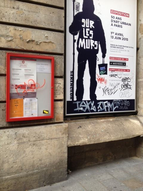 Nous n'avions pas relayé en l'annonçant dans notre blog, comme nous le faisons habituellement, l'exposition "Sur les murs" qui a lieu actuellement au Crédit Municipal, 55 rue des Francs Bourgeois (IVe) et fait l'apologie du "Street Art", notre quartier étant suffisamment tagué comme cela…