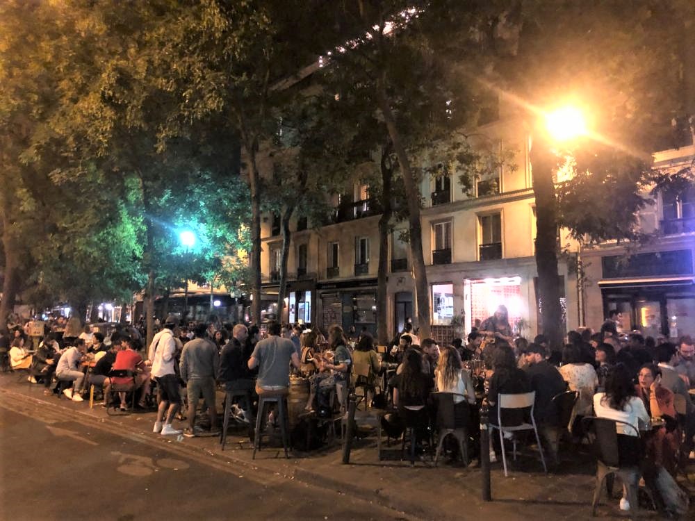 La situation a bien évidemment empiré avec l'autorisation pour les cafetiers d'envahir l'espace public. Là encore, aucune vérification n'a lieu et les 22h de fermeture ne sont pas respectés : tous les soirs 200 personnes minimum attablées sans protection hurlent sous nos fenêtres. Les trottoirs sont envahis : il ne fait pas bon d'être en situation de handicap dans le quartier. Les rencontres avec la Maire de Paris et les associations n'ont rien apporté, sinon qu'on nous demande de faire nous-mêmes un travail de police !