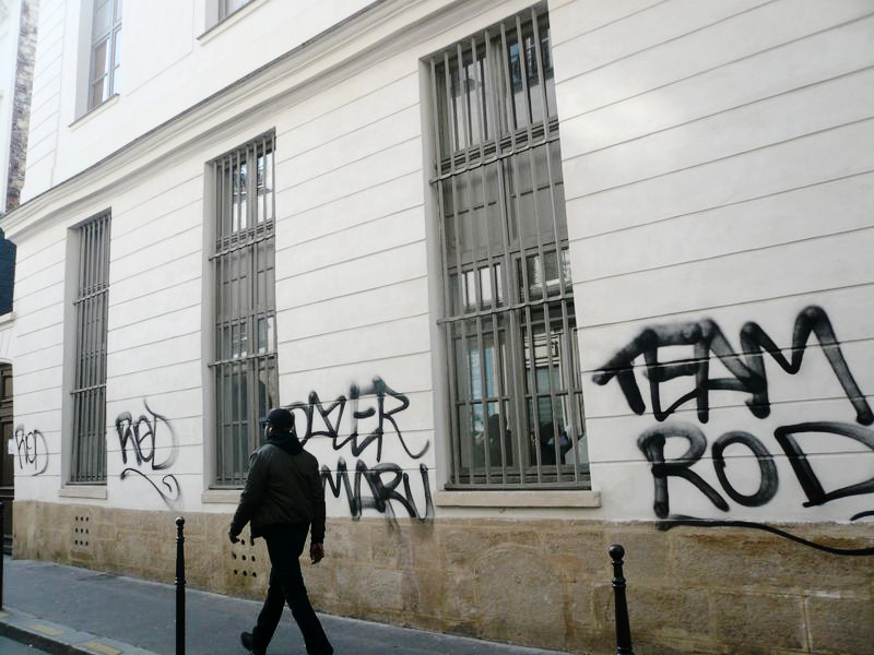 Les choses ne sont pas forcément liées mais d'énormes tags agressent les passants sur le côté impair de la rue.