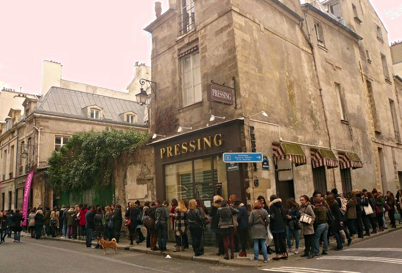 La manifestation avait été annoncée la veille sur Internet mais aussi par de nombreuses affiches agraffées aux alentours sur des potelets dont ce n'est pas la fonction primaire. Affiches que les riverains s'étaient empressés de retirer car elles défigurent leur quartier. Malgré cela, une foule nombreuse a fait la queue toute la journée, comme pendant la guerre ou dans les pays de l'est du temps du rideau de fer, pour acquérir le droit d'entrer dans le walhalla où des affaires réputées mirifiques les attendaient.